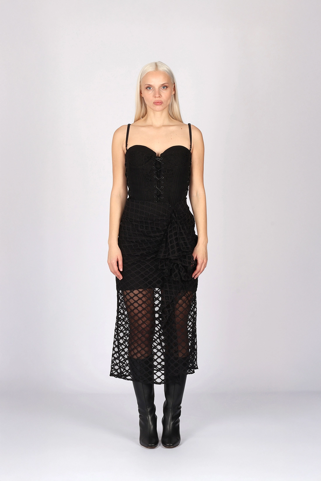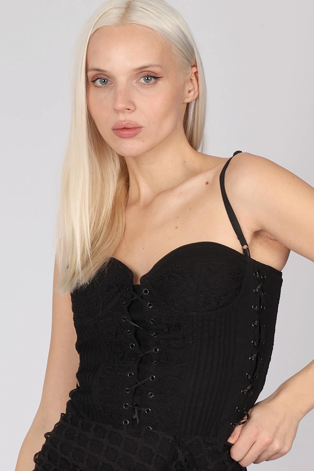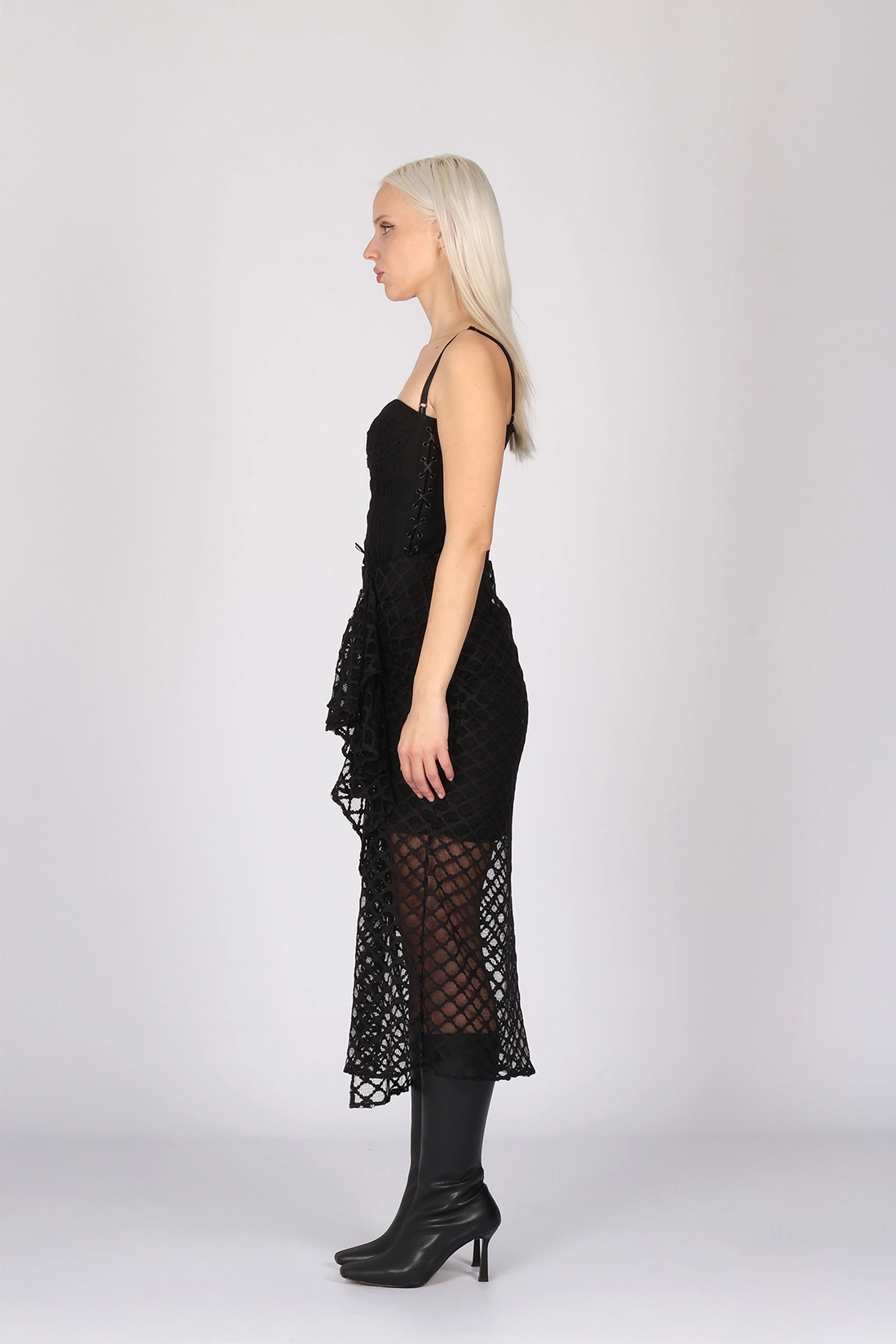 - Dantel ve astarlı uzun etek